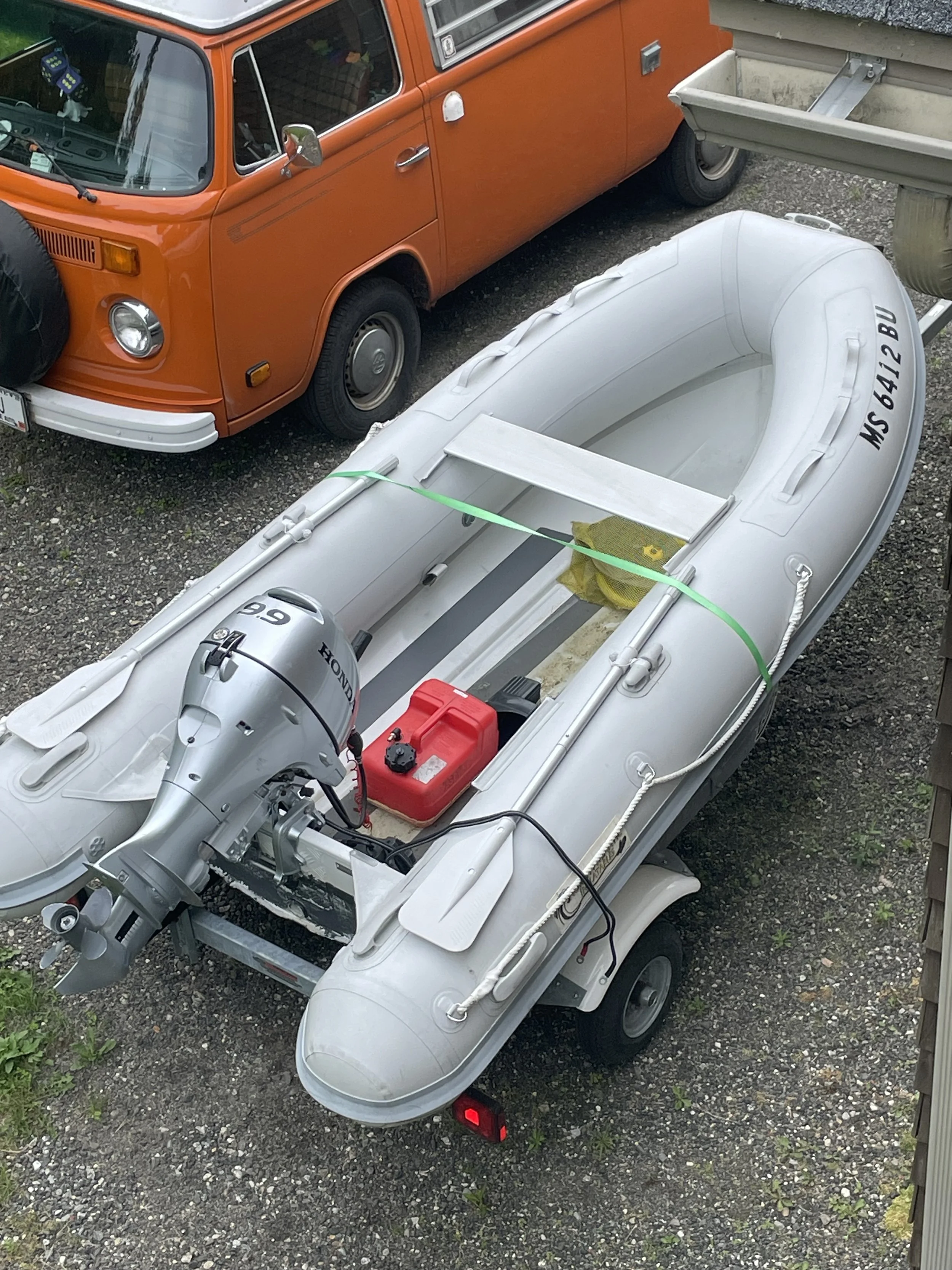 2021 10' North Atlantic Inflatable Hypolon Dinghy and 9.9 hp Honda outboard.